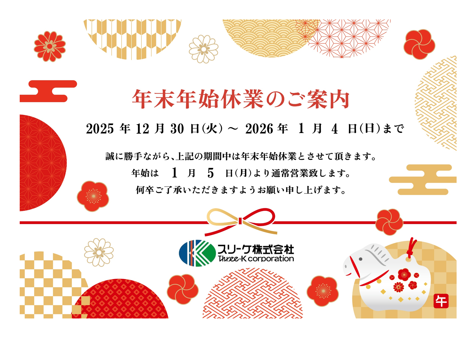 来年もより一層のご支援を賜りますよう、心よりお願い申し上げます。